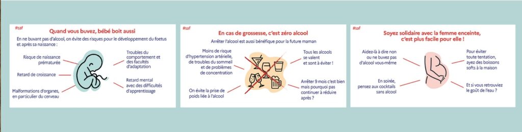 Il « n’existe aucune dose minimale en dessous de laquelle l’alcool serait sans risque », notent les autorités de santé, ajoutant qu’il ne suffit que d’un seul verre. En conséquence, le seul message de prévention possible est « Zéro alcool pendant la grossesse ».