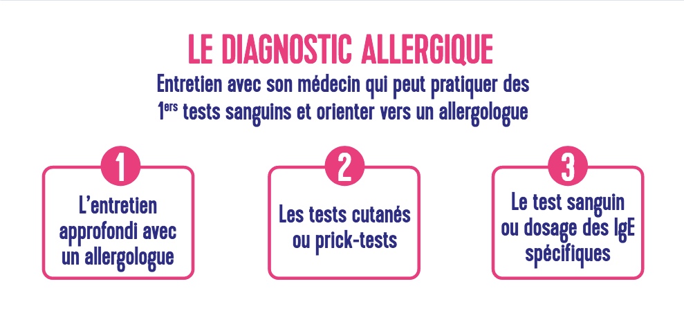 - Au moindre symptôme, n’hésitez pas à consulter votre médecin traitant qui vous orientera, le cas échéant, vers un allergologue.
