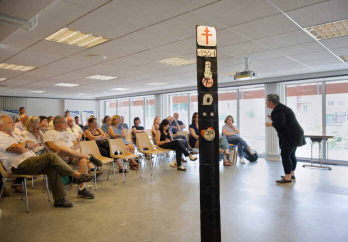Elle, la dyslexique, l’aide-soignante qui a hésité à se pendre dans le vestiaire de l’hôpital où elle travaillait, un matin de 2017. Trop usée, trop cassée mentalement et physiquement. Elle démissionnera et tirera une conférence gesticulée de cette expérience, intitulée : Tagada soin-soin. Les astuces de Sioux d’une aide-soignante à l’hôpital du commerce. Elle s’étonne, qu’elle, fille de militants, qui a commencé à manifester dans le ventre de sa mère, n’ait entendu parler d’Ambroise Croizat qu’en 2015, par hasard, pendant une manifestation.