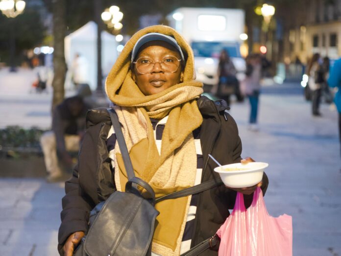 Un peu à l’écart, Fadi, 25 ans, enceinte de cinq mois, attend. « C’est la quatrième fois que je viens le soir ici. La journée, j’appelle le 115 mais ils disent toujours : “Ah non madame, il n’y a pas de place, rappelez demain.” Et le lendemain, pareil. Tous les jours, c’est comme ça. » A côté d’elle, Tatiana, 46 ans, acquiesce. Elle est arrivée du Congo-Brazzaville il y a deux ans et demi. « C’est ma cinquième fois ici. J’ai dormi dans les gares, sous les ponts. C’est tellement dangereux pour nous, des gens viennent nous menacer. C’est très dur. »