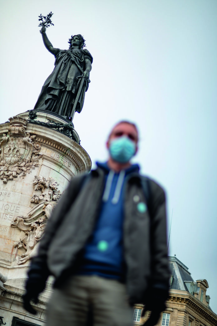 Emile, 21 ans est membre de l’association Utopia 56 qui a organisé le camp de migrants place de la République. Paris, 9 décembre 2020.