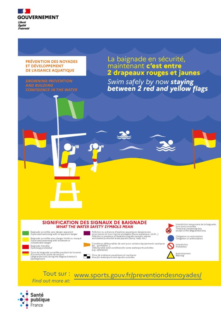 - choisissez les zones de baignade surveillées, respectez les interdictions de baignade ;